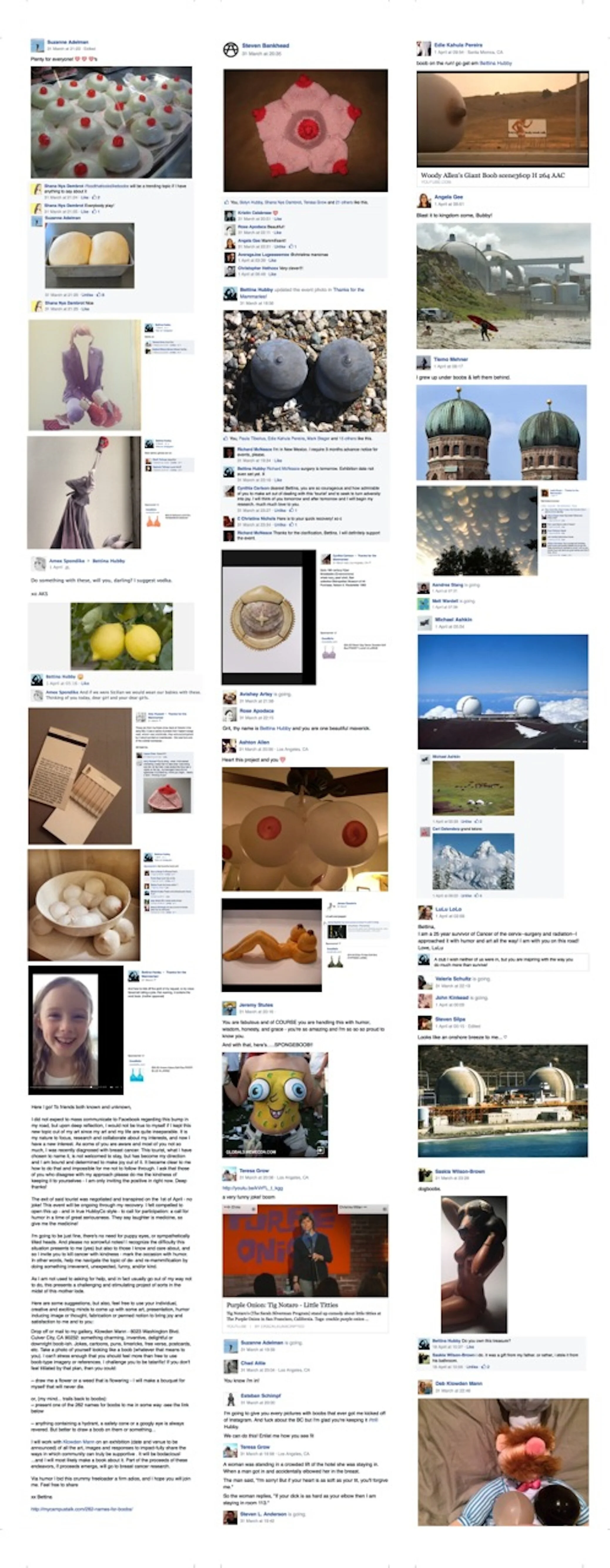 The work chronicles the Facebook dialogue surrounding Hubby’s diagnosis of breast cancer in 2014.